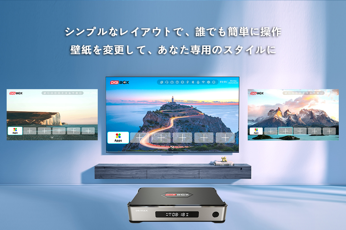 ▶️ ️DIGIBox D6 Maxは直感的なレイアウトを採用し、誰でも簡単に操作してカスタマイズできます。壁紙も簡単に変更できるので、自分だけのデバイスに。パワフルなパフォーマンスとユーザーフレンドリーなデザインで、シームレスでカスタマイズされた視聴体験をお楽しみください。