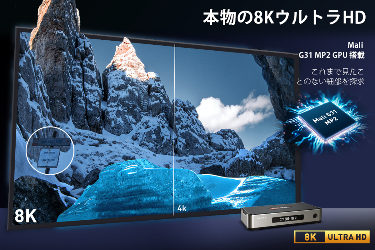 ▶️Mali-G31 MP2 GPUを搭載し、鮮明で色彩豊かな8K Ultra HD映像を実現。映画、スポーツ、ゲームなどあらゆるコンテンツを高精細かつ臨場感あふれる映像で楽しめます。まるでその場にいるような没入体験を提供します。