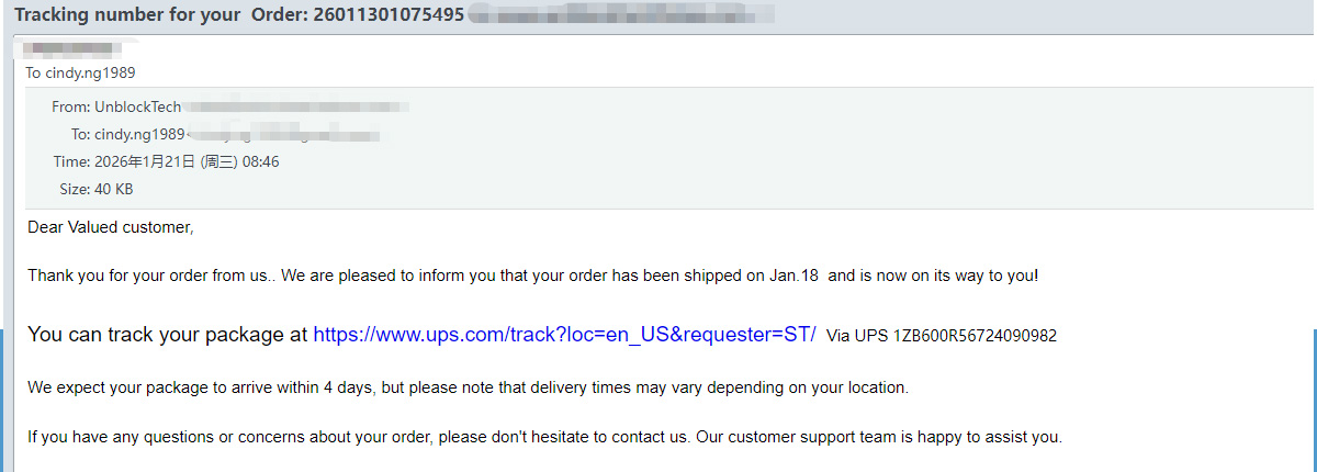 1️⃣ 荷物の発送後、カスタマーサービスチームから追跡番号をメールでお送りします。最新情報については、定期的にメールをご確認ください。