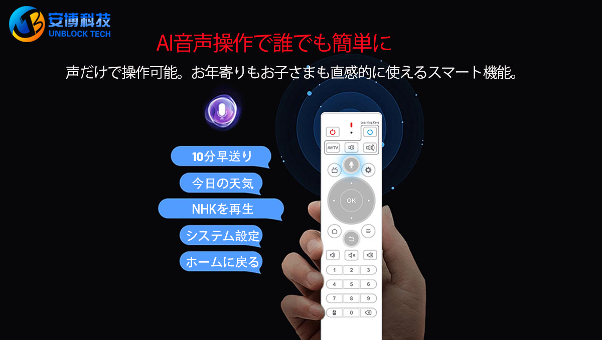 ▶️Unblock Tech UBox12A Androidメディアプレーヤーは、AIスマート音声コントロールを搭載。老若男女問わず、誰でも簡単にデバイスを操作できます。話しかけるだけで、瞬時に反応するので、あらゆる年齢層に使いやすい体験を提供し、家族全員で楽しめます。