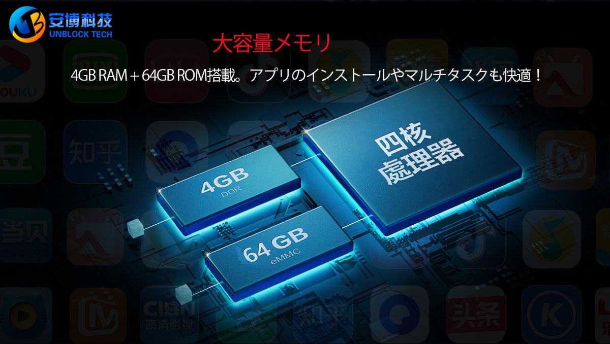 ▶️Unblock Tech UBox12 AndroidスマートTVボックスは、パワフルな4GB RAMと128GBストレージを搭載し、アプリの起動を超高速化し、マルチタスクもスムーズに行えます。アプリのクラッシュとはおさらば。制限なくシームレスにインストールできます。ストリーミング、ゲーム、新しいアプリの探索など、あらゆるエンターテイメントニーズを楽々と満たす、比類なきパフォーマンスを提供します。